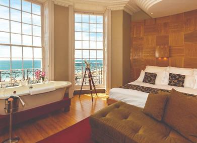 This 4-star luxury townhouse hotel is located directly on the Brighton seafront, providing the most wonderful sea views from their front facing guestrooms. Benefitting from either monsoon shower wet rooms and/or free standing feature baths for long indulgent soaks, all rooms are fully air conditioned, with waffle robes, slippers and a luxurious range of Green & Spring eco-friendly bath and body products, provided to help you unwind and pamper yourself.