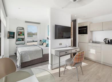 Q Square has been designed to offer flexibility and independence to our guests whilst offering the benefits of a hotel. These include complimentary toiletries, a weekly housekeeping service and a 24/7 reception desk, with staff who are always happy and ready to accommodate our guests.