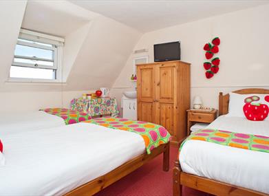 We have a range of accommodation to suit all budgets; from small but stylish singles with shared bathrooms to double ensuites with sea views. And let’s not forget our infamous ‘Fruity suite’ a separate area at the top of the hotel with accommodation for up to 16, perfect for small groups or large families!