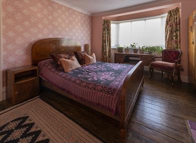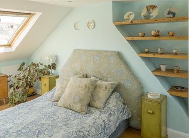 The Loft Room is a gorgeous, spacious room, full of light, beautifully furnished with hand-made/retro furniture and the Llanbradach Spires Bathroom. Amenities include: king size bed, flat-screen TV, DVD, kettle. Enquire about pets.