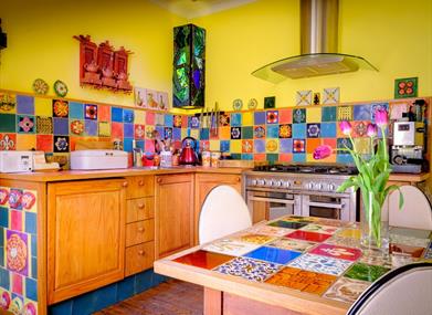It is the creation of architectural ceramicist Kay Aplin, who has transformed her home into a living work of art and has covered her house and garden with ceramic installations, and you can stay here!