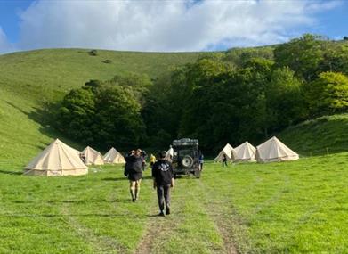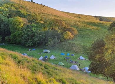 Found on the Firle Estate The Fold is approached by car along the Old Coach Road. Campers park and then ferry their gear up a farm track using big wheelbarrows.