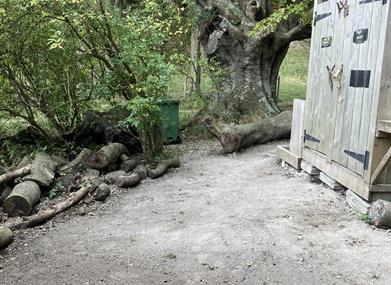 Campfires are allowed, hammocks are available and there's a sheltered seating area with a huge copper gypsy kettle for tea and hot water bottles. Hosts Stella and Griff can put up tents for you, cook supper over the fire and even do bacon, eggs, coffee and pastries for you in the morning. The crystal-clear drinking water is piped straight from a nearby borehole on the Estate, to the powerful hot showers and sinks.