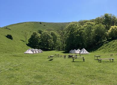 The site is deep within the ancient Firle Estate, approached by car along a bumpy lane known as the Old Coach Road. Campers park and then ferry their gear up a farm track using big wheelbarrows. This secluded and serene slice of Sussex countryside is perfect for celebrations and corporate events.
