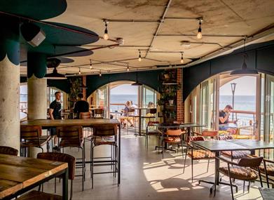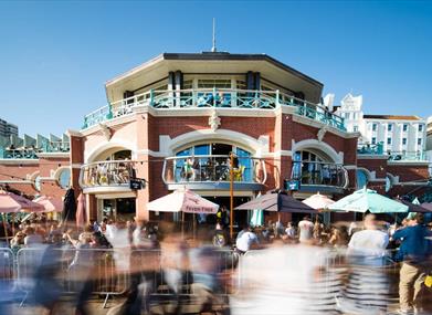 Shelter Hall is a large seafront venue with availability for exclusive or area hire for large groups. The seafront space offers diverse food choices from seven different kitchens as well as a large selection of beers, wines and cocktails. The venue is located 10 minutes from Brighton station, a two minute walk from Brighton conference centre and directly between the two iconic Brighton piers.