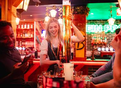 The bar is known for its legendary beer towers, 2 pint steins, cocktails, 2 foot pizzas, perfect for sharing. Regular entertainment includes live music, karaoke, musical bingo, quizzes, bottomless brunches and high-energy DJs that keep the crowd going well into the night. On weekends, Barbara’s also hosts lively brunches with bottomless drinks, pizza, and entertainment that turns daytime drinking into a full-blown party.