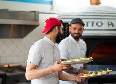 Our Hove pizzeria is spacious and open, with distinct areas for dining. You can sit at the counter and watch the kitchen action, upstairs on the mezzanine and on brighter days our terrace is perfect for soaking up the sun and the atmosphere. We have a party room that you can book for bigger groups. As well as pizzas we are renowned for our cocktails - the Hugo and a Negroni Sabagliato (or served classic if that’s your preference).