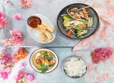The menu features a wide variety of much-loved Thai dishes, celebrating delicious fresh produce from the sea and land flavoured with Thailand's abundance of herbs, spices and vegetables. We offer vegetarian and vegan options and a fantastic value lunch menu with sharing plates, noodles and Thai soups starting from £4.50. An evening menu serves up classics such as Massaman Curry and Pad Thai alongside hero Giggling dishes such as Sticky Chicken and Salt & Pepper Squid. The drinks menu features perfect pairing wines plus delicious cocktails from Margaritas to Mojitos – all served with a Thai twist! Plus there's a kids' menu for 'Squidlets'.