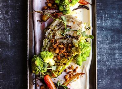 This is combined with our commitment to sustainability, visible in both the restaurant’s design and decoration(use of reclaimed tiles,non-animal tested paints,recycled aluminium external sign and wool-alternative felt-look upholstery fabric) and its dishes (made with responsibly sourced local fish and premium quality meat sourced from Sussex farms where welfare is of an extremely high standard) to name a few examples.