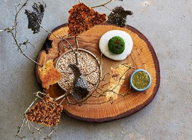 The restaurant's 18 and 21 course tasting menus are inspired by the Grade I Listed woodland gardens, with ingredients either foraged or grown on the 240-acre Leonardslee estate. Other produce is sourced from carefully selected local farms. Restaurant Interlude is open for dinner from Thursday to Sunday weekly, offering ten tables.
