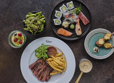 Dive into tapas like Korean cauliflower, edamame, and crispy rice bites. Express lunch features a Bento Box with sushi, robata, crispy chicken katsu, and refreshing sides, ideal for a midday break without compromising on flavour or ambience.