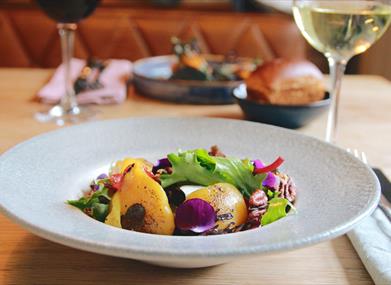 The Eight Bells is renowned for its delicious menu of locally sourced comfort food, with a focus on showcasing the best of Sussex ingredients. Among the standout dishes is the Sussex Smokie, a rich and creamy smoked haddock and cheddar bake, and the succulent Roast Loin of Pork served with all the trimmings on Sundays. The menu is ever-evolving, reflecting seasonal produce and offering an exciting variety of weekly specials. For those with dietary preferences, the pub caters to vegetarians and vegans with dishes like the Beetroot and Butternut Squash Wellington. There’s truly something for everyone to enjoy, whether you're craving a pub classic or a fresh, seasonal option.