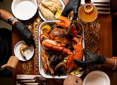 Not in the mood to get messy? No problem. The menu also features beautifully presented seafood platters, freshly shucked oysters, soft-shell crab burgers and Singapore chilli crab. All dishes are made using the finest locally and sustainably sourced seafood.