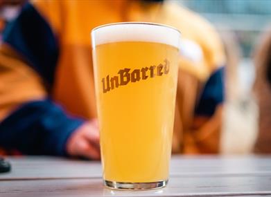 The taproom shares the floor with our Brewery. We have a 16 x tap wall showcasing the best of UnBarred, from our Table Beer to our range of Pale Ales up to indulgent Stouts. We also have a small selection of guest beers & cider featured.