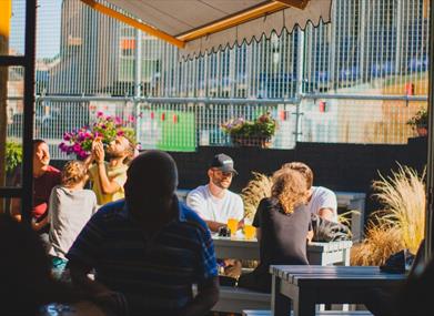 As well as our indoor taproom space right up close with our brewery, we have an amazing outdoor beer garden, a sun trap in the summer and heated throughout the winter. We are an inclusive space, with wheelchair access and baby changing facilities. Children are welcome until 7pm and we are also dog friendly.