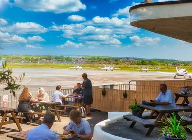 The airfield is home to the ever-popular Hummingbird Restaurant, where patrons can enjoy delicious home-cooked food, whilst drinking in the views of our bustling airport. Restaurant-goers can even step outside onto the Hummingbird’s very own terrace, offering panoramic scenes of the airfield, the Gothic Chapel of Lancing College, and beyond to the rolling hills of the South Downs National Park.