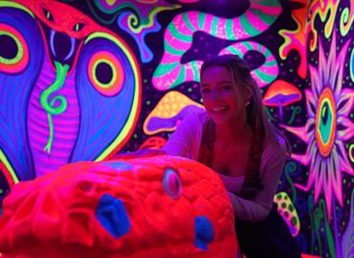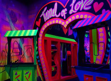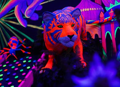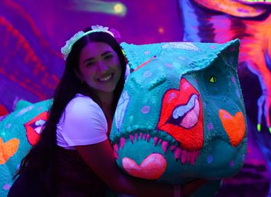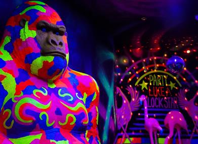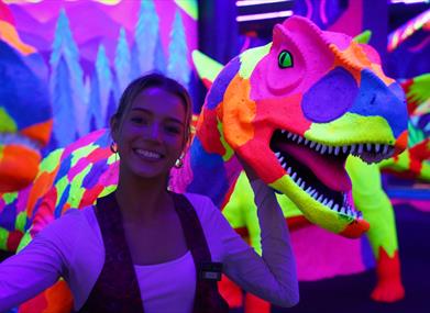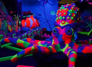 Our venue features three immersive 12-hole mini-golf courses, each showcasing the incredible artistic talent of our in-house team. Play among giant sea creatures, step into the vibrant Carnival, encounter life-sized dinosaurs and exotic animals, or explore the Labyrinthia maze and uncover a world of magic. Whatever adventure you choose, everything glows, creating an unforgettable experience.
