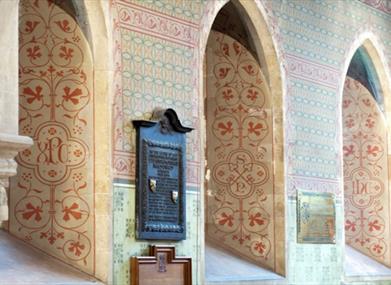 Today, the paintings stand out in reds and browns against the limewashed walls. Although fragments, you can pick out the nativity with a bowl-shaped crib and the infant Jesus. The violent scene of Thomas Becket's murder in Canterbury is clearer - you can see one of the four knights, possibly William de Tracy, plunge his sword into Becket's head and you can see blood dripping from the hand of Edward Grim, Becket's chaplain, who was injured while trying to protect him.