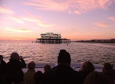 - The Brighton Sunset Cruise is a one-hour trip leaving from Brighton Marina on a large vessel that takes 50 passengers. We head west from the Marina past Brighton's iconic seafront and piers as the sun sets in front of us. Our wildlife guides are onboard to narrate the experience and tell you all about the marine life you can see in Sussex waters. This is a great trip for families and children are welcome aged 2+.