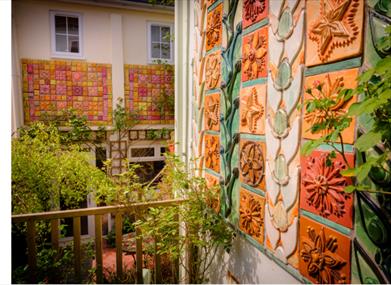 It is the creation of architectural ceramicist Kay Aplin, who has transformed her home into a living work of art and has covered her house and garden with ceramic installations, and you can stay here!